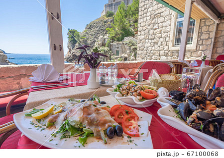 海沿いのシーフードレストラン(クロアチア・ドブロブニク)