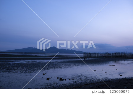石垣島観音崎の海と空が溶け合う美しい情景 梅雨空 ロングシャッター風景