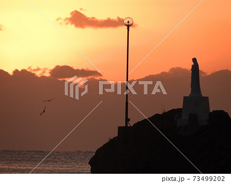 海上マリア像の夕陽