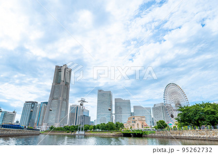 日本のの横浜都市景観 横浜の街並みや観覧車などを望む