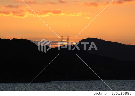夕暮れの瀬戸内海、備讃瀬戸の小豊島の夕空を小豆島フェリーから見る