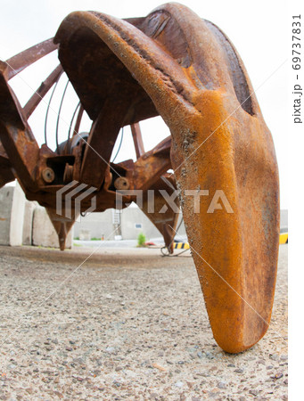 大型しゅんせつ機械の異形な爪・大きなカニの爪みたいです。重機イベントポスターにどうぞ。