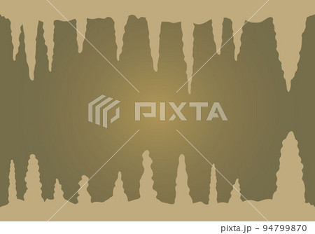シンプルな鍾乳洞の背景イラスト/上下に生えた鍾乳石/薄暗い洞窟/ほのかな明かりでライトアップ/秋芳洞