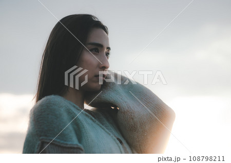 大自然で切ない表情の女性