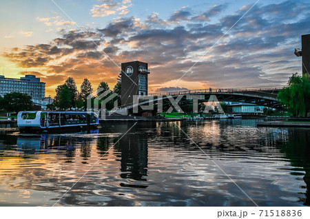 富山 富岩運河 秋の環水公園 天門橋と夕陽