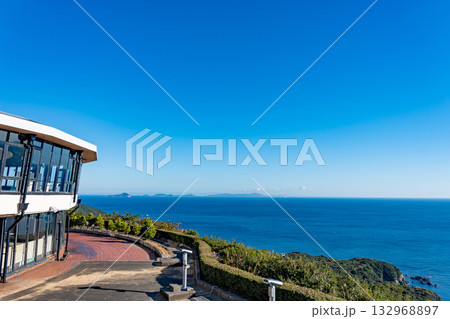 三重県鳥羽市 朝のパールロード鳥羽展望台にある海女のテラスと展望デッキ