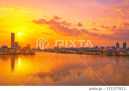 新潟港 朱鷺メッセなど 夕焼け