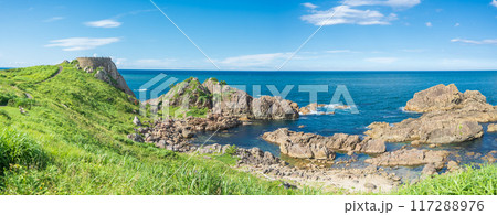 「青森県」ドローンで上空から葦毛崎展望台を望む・八戸市