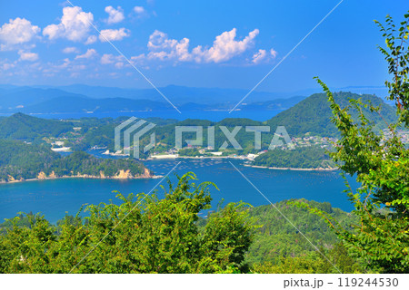 東北・気仙沼大島・亀山展望からの眺め、唐桑半島と、養殖の生け簀・宮城県気仙沼市