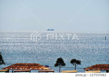 [二色の浜海水浴場]夕暮れ時の美しいビーチ