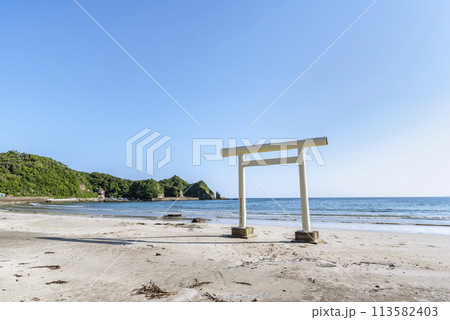 八坂神社 一ノ鳥居(白い鳥居) 千葉県勝浦市鵜原海水浴場