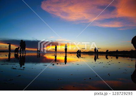 美麗夕陽的白色海灘日本和歌山白良浜Shirarahama