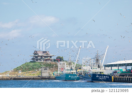 「青森県」ウミネコ繁殖地蕪島と八戸第一魚市場漁港 八戸市