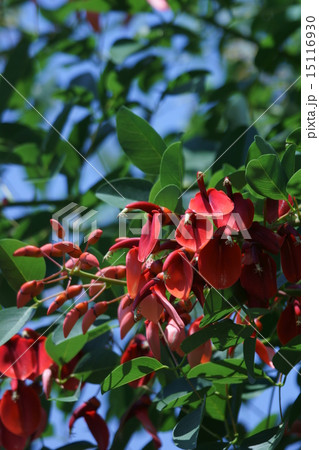 アメリカデイゴ 赤い花 青空 雲