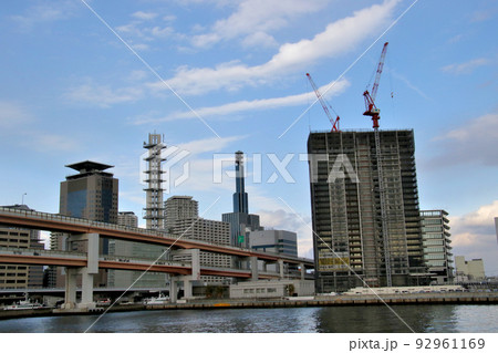 メリケンパークよりNTTドコモ神戸ビル方面、国道2号線浜手バイパスを望む