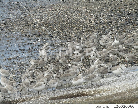 初夏の浜辺を彩るオレンジ色と白の美しいシギの仲間ミユビシギ