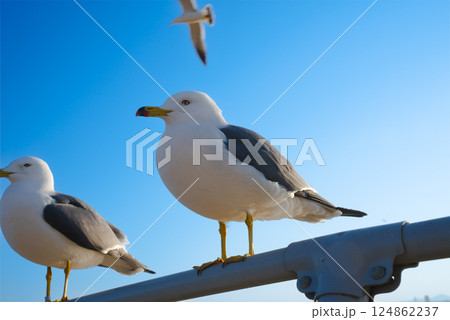 青い海で羽ばたく身近な海辺の渡り鳥ユリカモメ
