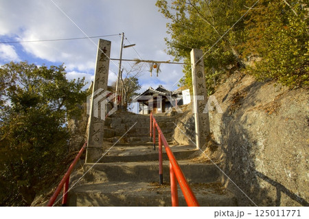 小豆島・「小瀬の重岩(こせのかさねいわ)」の登山道にある不動尊と休憩所