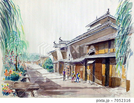 海野宿の水彩画 宿場町 北国街道 手書き スケッチ