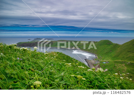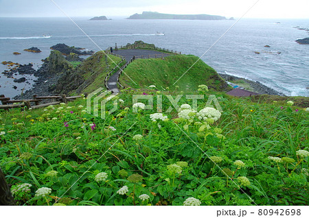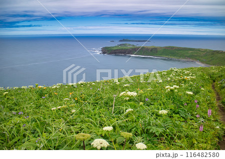 礼文島スコトン岬とオオハナウドの白い花(北海道礼文町)