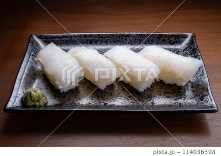 写真素材:鮨 握り寿司 イカ 真いか 甲いか 俯瞰