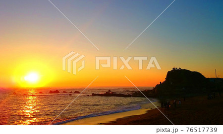 千葉県銚子市の海鹿島海岸から見た綺麗な朝日