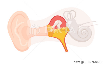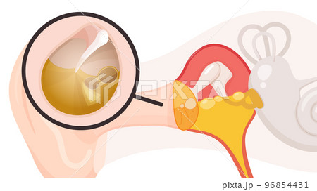 耳の構造のイラスト_滲出性中耳炎_滲出液の溜まった中耳