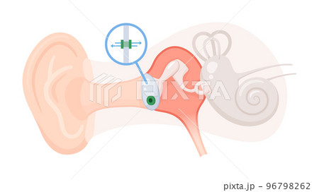 鼓膜にチューブが刺さっている状態のシンプルなイラスト