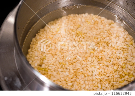 水に浸した餅米のイメージ