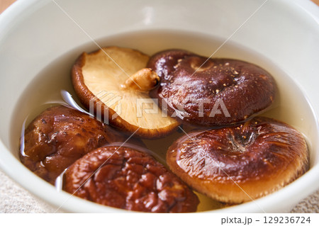 干し椎茸の水戻し|和食の乾物食材を水で戻している調理シーン