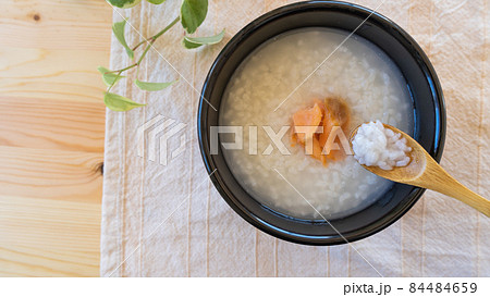おかゆ お粥 茶碗に盛られた熱々のおかゆ