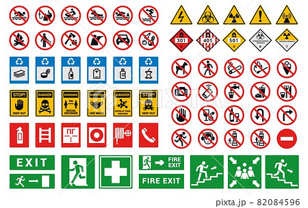 set of stop fire equipment signs