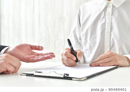 契約を迫るビジネスマンとそれを拒む人物の手元