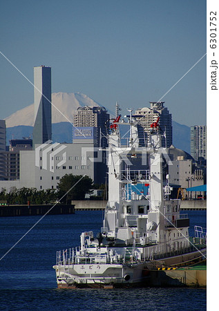 桟橋に停泊中の巡視船 ひりゅう 消防艇 横浜ベイブリッジ