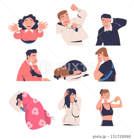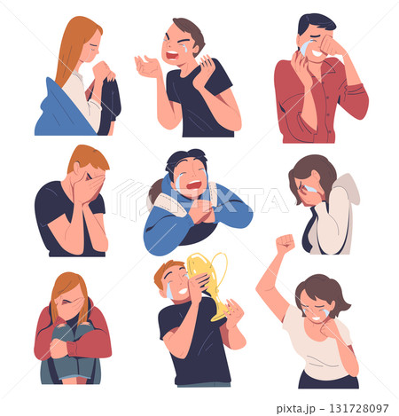 People Character Crying from Grief and Happiness Vector Set