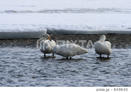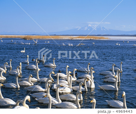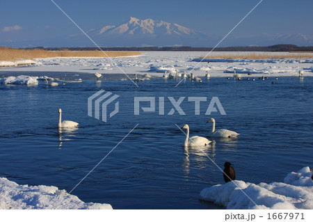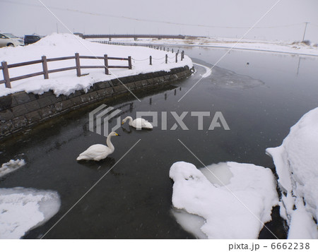 北海道 冬の涛沸湖に飛来した白鳥
