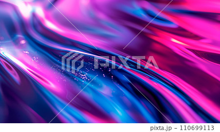 AI-generated content. Holographic chrome gradient waves abstract background. Curve Dynamic Fluid Liquid Wallpaper. Glowing purple red yellow orange black abstract color gradient banner poster cover