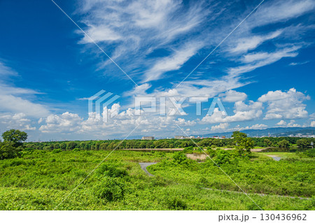 淀川夏景色 淀川左岸堤防上からの眺め 枚方市