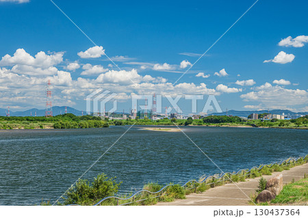 夏の淀川風景 淀川河川公園枚方地区からの眺め 枚方市