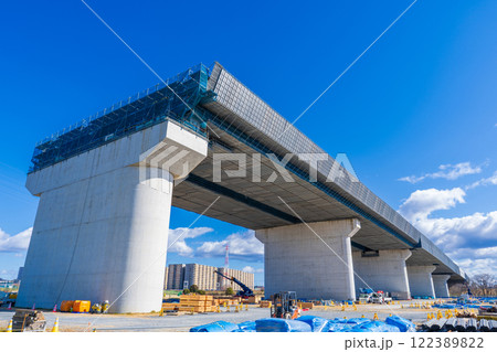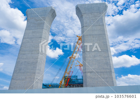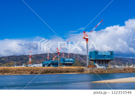 大阪府 淀川左岸河川敷 工事中の新名神高速淀川橋梁