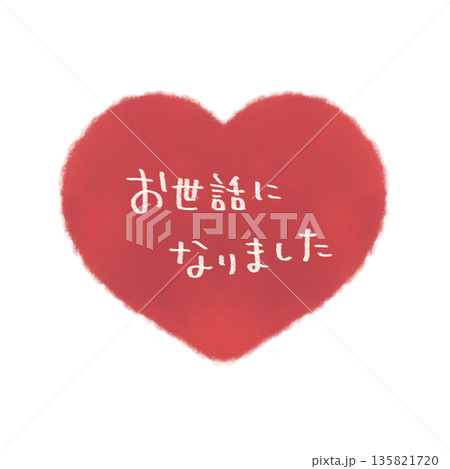 お世話になりました 文字入りのシンプルな手描きのハートイラスト素材