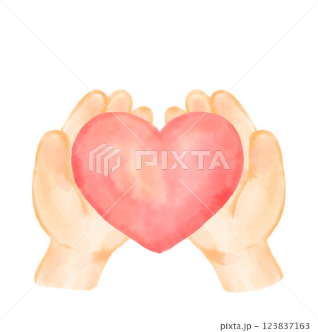 ピンクのハート 抱える 女の子 黄色 水彩 パステル 主線なし