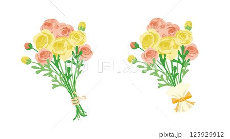 ラナンキュスのブーケのカラーバリエーションのイラストセット