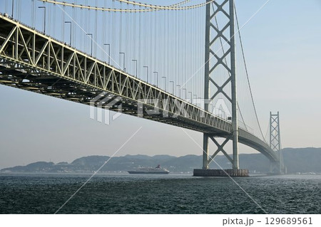 明石海峡大橋とクルーズ豪華客船「にっぽん丸」