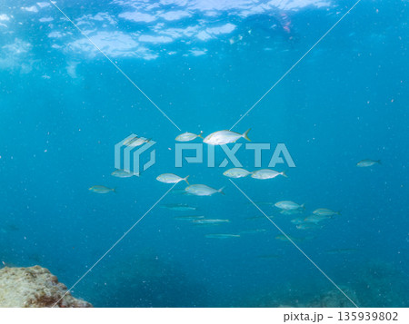 美しいマアジ(アジ科)他の群れ。静岡県伊豆半島賀茂郡南伊豆町中木ヒリゾ浜2024年