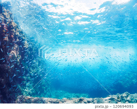 美しいキビナゴ(ニシン科)他の大群。静岡県伊豆半島賀茂郡南伊豆町中木ヒリゾ浜2024年