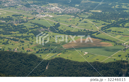 Fields in the valley view from above