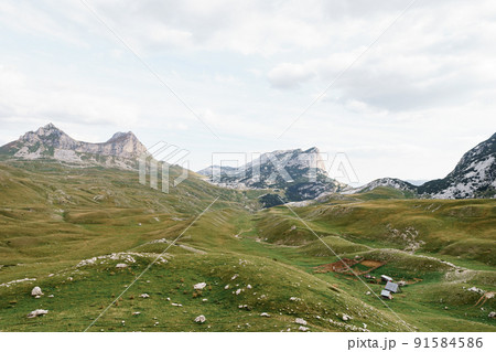 Cottages in the valley at the Saddle Pass in Durmitor National Park