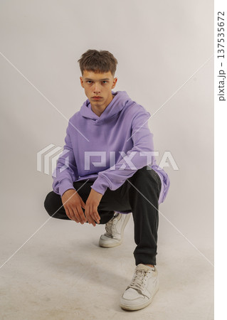 Handsome young guy in stylish clothes on white