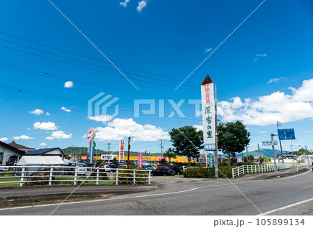 道の駅ゆのたに 物産館 深雪の里 特産品 夏晴れの青空 新潟県魚沼市吉田